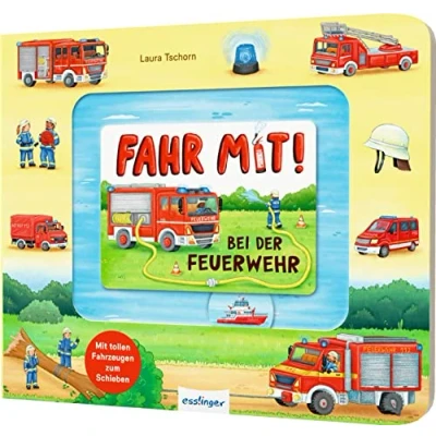 Meine Schiebebahn Pappe: Fahr mit bei der Feuerwehr: Pappebuch Fahrzeugen zum Schieben