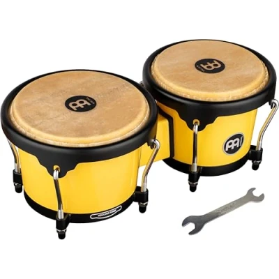 Meinl Percussion Bongos Journey Series 2 hand drums with 6.5 and 7.5 inches including tuning key ABS plastic, Yellow (HB50IY)