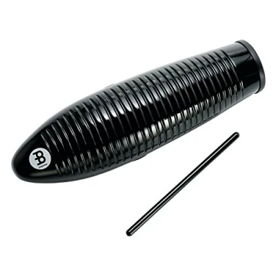 Meinl Percussion Fiberglass Guiro Instrument Hollow Musical with Rubber Ringed Grip Holes 3 Striking Surfaces Fiberglass, Black (GU7BK)