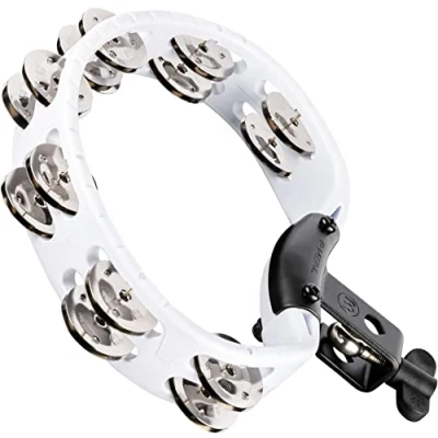 Meinl Percussion Headliner Mountable Tambourine 2 Row With L Shaped Holder ABS Plastic / Steel, White Silver (HTMT2WH)