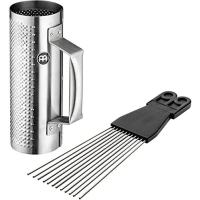 Meinl Percussion Merengue Güira Instrument Very Small Hollow Scraper With Handle Including Steel, Silver (MGU4)