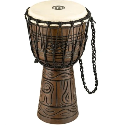 Goblet Drum - This single-headed African hand drum is played with the hands while sitting or standing Mahogany Wood - The djembe was hand-carved from a single piece of mahogany wood and features pre-stretched nylon ropes Hand-Selected Goat Skin - This djembe features hand-selected goat skin for an authentic sound 4 Sizes - This djembe is available in 4 different sizes, with this one featuring an 8-inch diameter, which is the small size Rhythmic Accompaniment - Djembes are the compact musical addition for singers and songwriters