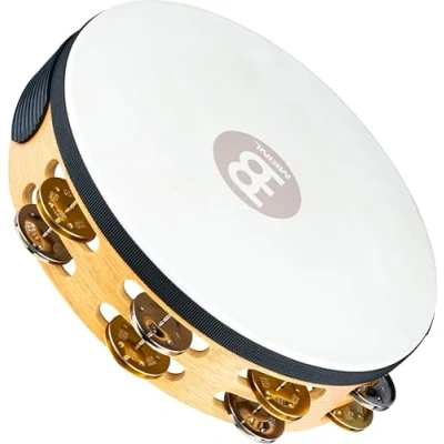 Meinl Percussion Traditional Headed Tambourine With Goat Skin Head 10 inch Diameter Siam Oak / Steel and Brass, Natural (TAH2M SNT)