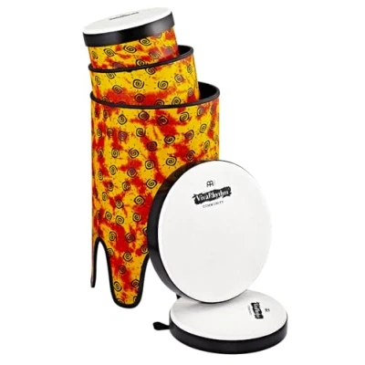 3 Drums - The set consists of 3 hand drums in small (10-inch), medium (12-inch), and large (14-inch) sizes Bass Drum - This single-headed, large bass hand drums are played with the hands while sitting or standing Stackable - For easier transport and space-saving storage, the bass drums can be nested inside each other Drum Circle Instrument - With a plastic body, these drums are suitable for drum circles and jam sessions Non-Slip - The rubber bottom of the instrument provides a secure playing feel and protects sensitive surfaces