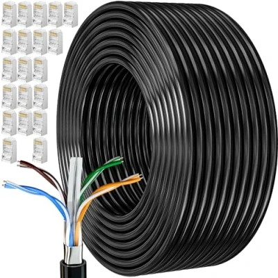 MEIPEK Ethernet Cable 100m, Cat 6 External Bulk Internet 100 Meters FTP 23AWG High Speed Lan Network Shielded Anti Jamming Weatherproof Rj45 Patch
