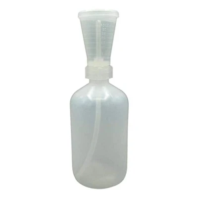 MEK Peroxide Adjustable Volume Dispensing bottle 16oz. Measuring cup holds up to 35CC Soft Plastic bottle makes it easy to squeeze Lines on the measuring cup so you know how much you have Molded of high quality polyethylene Can be used with solvents, liquids, epoxy, gelcoat, etc.