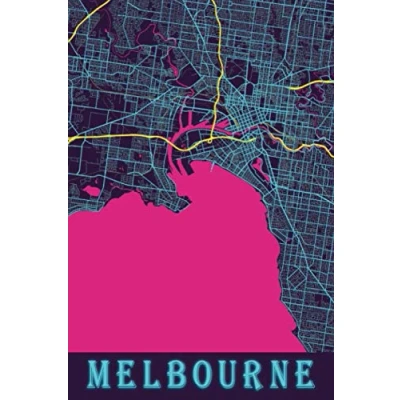 Melbourne: 6x9 Lined Journal Memory Book Travel Diary To Record Your Thoughts Graduation Gift Teacher Gifts Neon Map For People Who Love Melbourne Australia
