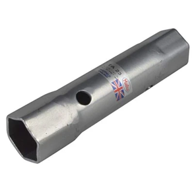 General description The Melco TA23 A/F Box Spanner is a double-ended, long, and slim tool designed for tightening or loosening bolts and nuts in narrow spaces. It is commonly used in plumbing maintenance and automotive repair. Made from 4mm bright plated steel with a black powder-coated finish, this spanner offers durability and corrosion resistance. Technical specifications Size: 1 1/4 inch x 1 7/16 inch Length: 190mm (7 1/2 inches) Compatibility and accessories Designed to accommodate a tommy bar for added leverage Installation No installation required; simply use the spanner to tighten or loosen fasteners in narrow recesses Usage Ideal for plumbing maintenance and automotive repairs involving bolts and nuts in tight spaces Use with a compatible tommy bar for increased torque Other information