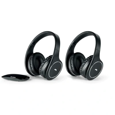 Universal with analog and digital audio input for quick connection to TVs, set-top boxes, Blu-ray, and other analog and digital audio sources Small transmitter base, can be hidden behind the TV and powered by a USB socket The headset is equipped with a built-in lithium-polymer battery, recharges very quickly via a USB cable (2h for a full charge), about 8 hours of continuous use with a single charge Ergonomic and comfortable, the ear cups adapt to the shape of the ear and the adjustable headband ensures optimal positioning for prolonged use Two transmission channels available to avoid interference If only the second headset does not work, we recommend checking the headset charge, reconnecting the headset to the base and turning off the first headset