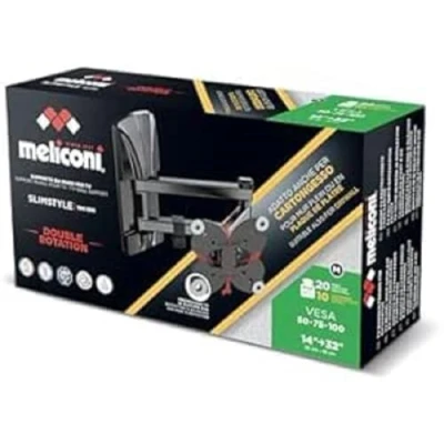 TV mount: Slimstyle Plus is the new series of ultra-flat TV wall mounts from Meliconi S.p.A. optimal balance between advanced technology, modern materials and attractive design; 100SDR is a comfortable and secure TV wall mount. Also suitable for plaster walls: our TV mount is also ideal for 12.5 mm to 25 mm thick plasterboard walls; when installed on plasterboard walls. Cartonboard plates up to 10 kg and can be attached anywhere on the wall, regardless of the vertical post, attach posts anywhere on the wall Compatibility: Slimstyle Plus 100SDR is ideal for TVs from 14 inches to 32 inches and with VESA 50x50, 75x75, 100x100; before purchase please check the distance between the 4 holes on the back of the TV MAXIMUM LOADING CAPACITY The TV mount can support a maximum weight of 20kg or 10kg when mounted on plasterboard DOUBLE ROTATION: thanks to the double bar, you can quickly and easily rotate, tilt and move your TV away from the wall or closer to the wall with this Meliconi TV mount so you can watch TV from any angle MELICONI Quality: since its inception, Meliconi has been launching original and accessible products that make your everyday life easier with a focus on functionality and material quality; this Meliconi TV mount is 100% made in Italy and TÜV certified