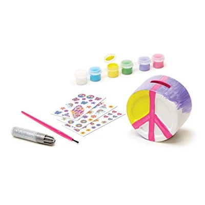 Includes resin peace sign bank, 61 stickers, 6 pots of paint, paintbrush, and glitter glue Decorate both sides Craft kit and keepsakes in one Perfect activity for parties or rainy days Promotes fine motor skills, hand-eye coordination, and creative expression, Manufacturer: Melissa & Doug