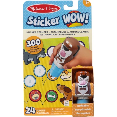 Melissa&Doug Sticker Wow! Dogs is an interactive sticker activity set featuring a refillable dog-shaped stamper with 300 assorted stickers and 24 pet-themed activity pages. Perfect for ages 5–7, it's travel-friendly, mess-free, and encourages creativity and fine motor skills.