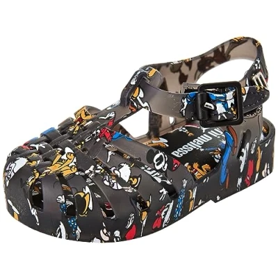 melissa Mini Possession Print + Mickey and Friends BB, Girls Flat Sandals, Black/White, 7 UK Child
