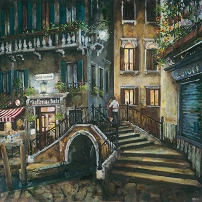 Melissa Sturgeon Trattoria al Ponte, Venice 40 x 40cm Canvas Prints, Polyester, Multi Colour, 40x40x3.2 cm