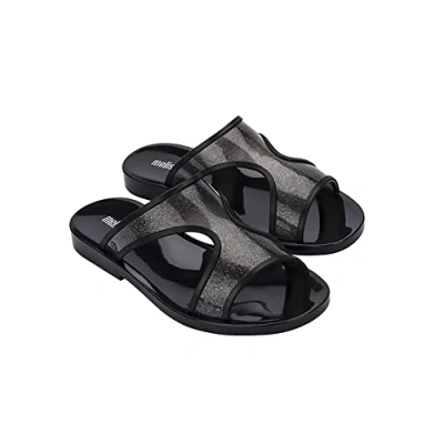 melissa Women's Bikini Slide Ad Flat Sandal, Black/White, 4 UK