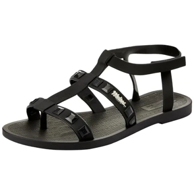 melissa Women's Sun River Ad Flat Sandal, Black/White, 6.5 UK