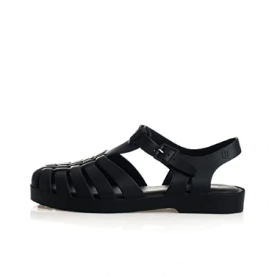 From stilettos to flats Melissa produce quality synthetic footwear for the fashion conscious keeping your footwear collection feminine and chic with a daring quality for those who love to make a statement. They present these Possession Sandals which come in a black colourway for the perfect footwear staple. Details; black colourway synthetic upper open fisherman style woven detail closed toe ankle strap with adjustable buckle tonal sole and branding to the footbed to complete.