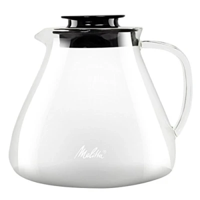 Borosilicate glass jug with modern design, For manual preparation of fresh coffee at home, Used with Melitta Pour Over filter holders, Capacity: 8 cups (125ml) or 12 small cups (85ml) Preserving the aroma by maintaining a constant temperature for 30 minutes, Microwave safe Can be used with one hand: Easy pouring thanks to the pouring spout and the ergonomic and heat resistant handle Easy to clean by hand and dishwasher safe Contents: 1 Melitta Pour Over glass jug, Transparent, 1 L, Packaging dimensions (WxHxD): 15.2 x 14.5 x 15.2 cm, Weight: 383 g, Weight: 0.84437046346 Pounds, Manufacturer: Melitta