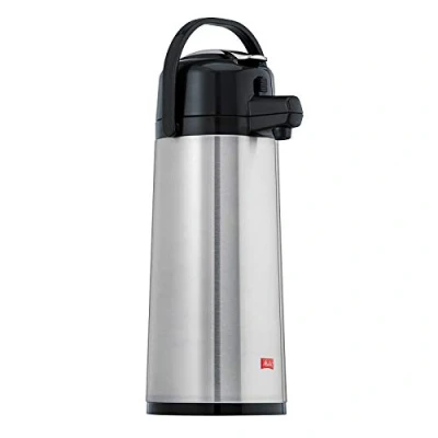 Melitta Pump Pot Vacuum Jug 2.2 Litres/Approx. 16 Cups Glass Insulation, Stainless Steel Exterior Silver & Black