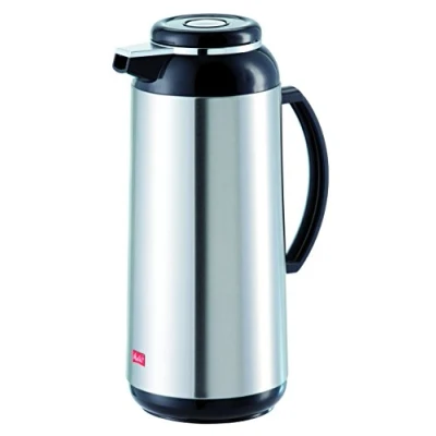 Practical vacuum flask with screw cap suitable for every conventional filter machine with insulated pot Ideal for serving hot and cold drinks: 1.9 litre capacity for up to 15 cups Optimal insulation thanks to double wall thermos jug with glass bulb Easy to clean both pot and lid by hand. In the box: 1 Melitta insulated flask with screw cap, bulb: glass; Colour: silver/black, volume: 1.9 Litre, Material: stainless steel/plastic.