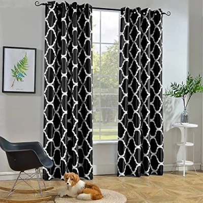 Melodieux (130cm x 240cm, Black) Moroccan Room Darkening Blackout Grommet Top Curtains, 130cm by Black (1 Panel)