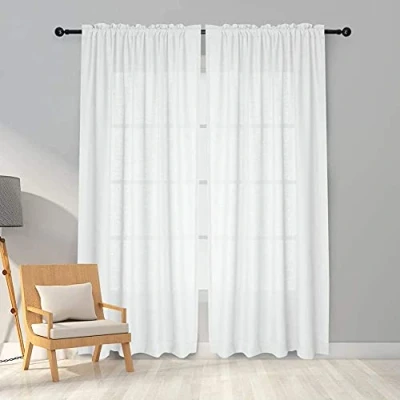 Melodieux 2 Panel Faux Linen Voile Net Curtains Semi Sheer Rod Pocket Drapes for Bedroom, Living Room, Window White, 55 x 102 inch drop (140 260cm)