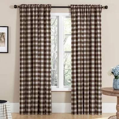 Melodieux Buffalo Check Plaid Curtains for Living Room, Bedroom Farmhouse Gingham Style Cotton Texture Rod Pocket Semi Curtain Drapes, Brown, 52 x 63 Inch(2 Panels)