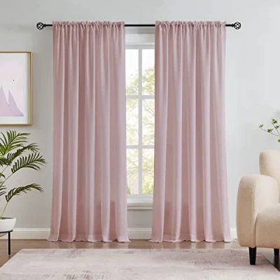 SOLD IN PAIR: Package includes 2 panels of dusty pink semi sheer voile curtains, each panel measures 52"W x 84"L (total 104" width for 2 panels). Length measures from the top curtain hem to the bottom. SOFT VELVETY MATERIAL: Well made of luxury velvety textured fabric, premium cotton blended material make the sheer curtains silky in look and soft to touch. Curtain surface has a charming sheen, adding a chic and concise sense to your windows. LIGHT FILTERING: Thanks to the high density natural cotton material, our semi sheer curtains can block out about 30% light, not too see through while still smartly invite sunlight to come through, creating an airy and breathable interior environment. Versatile for all sorts of rooms and occasions, like home and office window decoration, hotel rooms, weddings and celebrations etc. SUITABLE MATCH: Constructed with 1.6” inner diameter rod pocket and 1.2" long header hem. Can be hung separately, or arrange in pairs with blackout curtains in Melodieux. Very suitable for bedroom, living room, dining room, bay windows, or work as the solid backdrop for parties. EASY CARE: Machine washable with laundry bag or dry clean, gentle cycle, do not bleach, tumble dry low. Wrinkles will be removed after hanging for weeks or iron under low temperature. Any questions just feel free to contact us, and we will try our best to help you.