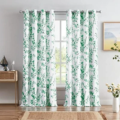 *Sold as Pair*: Package includes 2 panels floral curtains + 2 matching fabric tiebacks, each panel measures 52"W x 96"L (2 panels total width is 104"). Length measures from the very top of the curtain hem to the bottom. Green Apricot Flower: Innovative blooming flower design with vintage Chinese ink painting style, this farmhouse design will bring you a sense of spring and nature. White background also sets off the beauty of flower which is suitable for various occasions. Premium Fabric: Well made of polyester blend soft silky material, front and back is the same white layer, versatile for all kinds of home and office decoration, like your living room, bedroom, dining room, kitchen, study, patio... Or work as room divider, backdrop curtains. Easy Installation: 8 silver rust-free grommets per panel, easy to hang and almost mute to slide, inner diameter is 1.6 inch, can fit the most curtain rods. Fabric About 60%-70% light blocking, offer you enough privacy, can serve as room darkening curtains and window decoration. Care Instruction: Machine washable in cool water. Do not bleach. Tumble dry low. Wrinkles will disappear after hanging for a few weeks, or iron at low setting. We are dedicated to your shopping experience, any issues and questions just feel free to contact us.