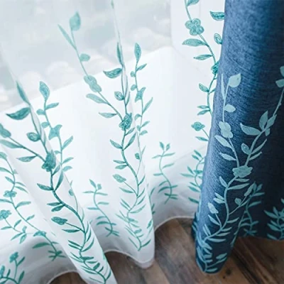 Sold as Single Panel: 1 panel Flower embroidery sheer curtain (52"Wx96"L). Not include the matching curtain. Unique Design: Blue flower embroidery on white sheer. Weights line in the bottom hem helps the sheer curtain hang evenly and naturally. Light Filtering: Invite light to enter room while still providing interior privacy, not see through. Creating a breezy and airy environment for you. Suitable Match: Constructed with 1.6” inner diameter rod pocket and 1.2" long header hem. Can be hung separately, or arrange in pairs with blackout curtain in Melodieux. Care Instruction: Machine washable with laundry bag or dry clean, gentle cycle, do not bleach, tumble dry low.