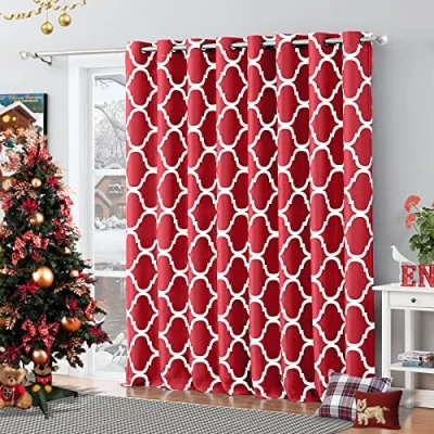 Melodieux Moroccan Fashion Room Darkening Blackout Grommet Top Curtains, 100 by 96 Inch, Red (1 Panel)