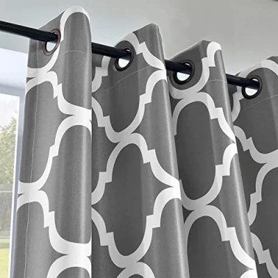 Melodieux Moroccan Fashion Room Darkening Blackout Grommet Top Curtains, 52 by 63 Inch, Grey (1 Panel)
