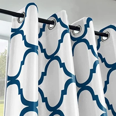 Melodieux Moroccan Fashion Thermal Insulated Grommet Room Darkening Curtains for Living Room, 52 by 63 Inch, Off White/Royal Blue (1 Panel)