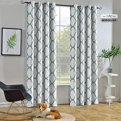 Melodieux Moroccan Fashion Thermal Insulated Grommet Room Darkening Curtains for Living Room, 52 by 84 Inch, Off White/Dusty Teal (1 Panel)