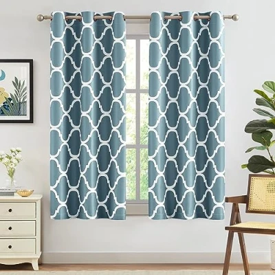 Melodieux Moroccan Fashion Thermal Insulated Room Darkening Blackout Grommet Curtains for Living Room, 42 by 63 Inch, Dusty Teal (2 Panels)