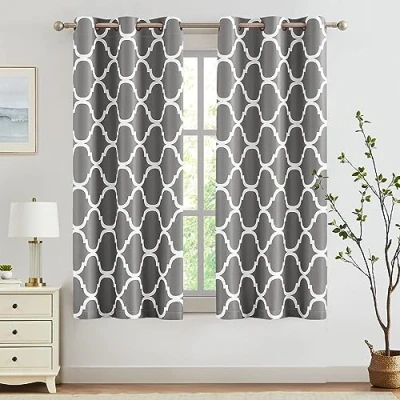 Melodieux Moroccan Fashion Thermal Insulated Room Darkening Blackout Grommet Curtains for Living Room, 42 by 63 Inch, Grey (2 Panels)