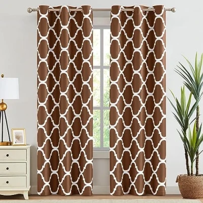 Melodieux Moroccan Fashion Thermal Insulated Room Darkening Blackout Grommet Curtains for Living Room, 42 by 96 Inch, Brown (2 Panels)
