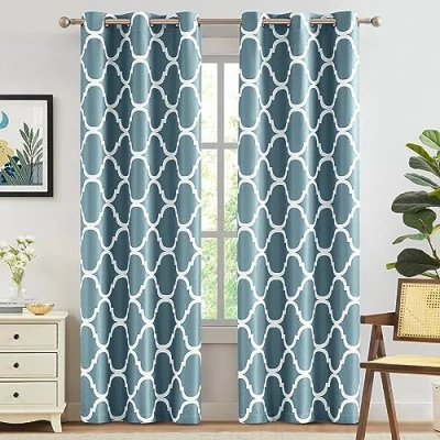 Melodieux Moroccan Fashion Thermal Insulated Room Darkening Blackout Grommet Curtains for Living Room, 42 by 96 Inch, Dusty Teal (2 Panels)