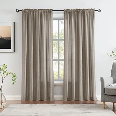 SOLD IN PAIR: Package includes 2 panels of taupe semi sheer voile curtains, each panel measures 52"W x 96"L (total 104" width for 2 panels). Length measures from the top curtain hem to the bottom. SOFT VELVETY MATERIAL: Well made of luxury velvety textured fabric, premium cotton blended material make the sheer curtains silky in look and soft to touch. Curtain surface has a charming sheen, adding a chic and concise sense to your windows. LIGHT FILTERING: Thanks to the high density natural cotton material, our semi sheer curtains can block out about 30% light, not too see through while still smartly invite sunlight to come through, creating an airy and breathable interior environment. Versatile for all sorts of rooms and occasions, like home and office window decoration, hotel rooms, weddings and celebrations etc. SUITABLE MATCH: Constructed with 1.6” inner diameter rod pocket and 1.2" long header hem. Can be hung separately, or arrange in pairs with blackout curtains in Melodieux. Very suitable for bedroom, living room, dining room, bay windows, or work as the solid backdrop for parties. EASY CARE: Machine washable with laundry bag or dry clean, gentle cycle, do not bleach, tumble dry low. Wrinkles will be removed after hanging for weeks or iron under low temperature. Any questions just feel free to contact us, and we will try our best to help you.