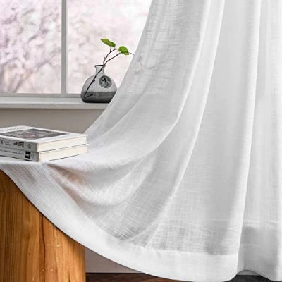 Package Contents: Sold as pair per package, you will receive 2 panels white semi sheer curtains + 2 matching tiebacks, each measures 52"Wx84"L (Total 104" wide for 2 Panels). Linen Texture: Well made of premium faux linen texture fabric with a rustic style, elegant in look and durable in use, creating a charming farmhouse feel to your window decorations. Light Filtering: 20%-30% light blocking, protect more privacy than ordinary sheer curtains while smartly invite natural light flowing into your room, creating a breezy and airy interior environment. Versatile Match: Constructed with 1.6 inch inner diameter rod pocket, suitable for most curtain rods. Vintage linen fabric is versatile to various scenario, bedroom, living room, dining room, sliding door, kid’s nursery, backdrops... Easy Care: Machine washable with laundry bag or dry clean, gentle cycle, do not bleach, tumble dry low, wrinkles will disappear after hanging for weeks. Any quality issue just feel free to contact us and our factory will offer you a satisfactory solution.