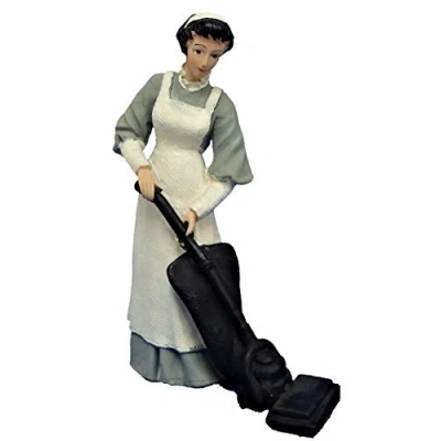 Melody Jane Dolls House People Victorian Maid in Grey Hoovering Resin Figure