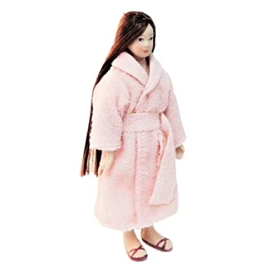 Melody Jane Dolls House Woman in Bath Robe Dressing Gown Porcelain 1:12 People