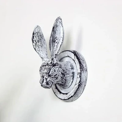 This Antique White Hare Head Coat Hook is a stylish wall storage choice, perfect for fans of farmhouse style and animal inspired decor, Made of metal, this wall hook comes with a classic hare design and an antique white painted finish with black distressing. Ideal wall storage for hanging coats, towels, dressing gowns or other hangable items. This would add a cute yet quirky touch to any kitchen, hallway, bathroom or bedroom space. This hook is available in other colours. Colour: Antique White 8.5cm x 13cm x 6cm (width x height x depth)