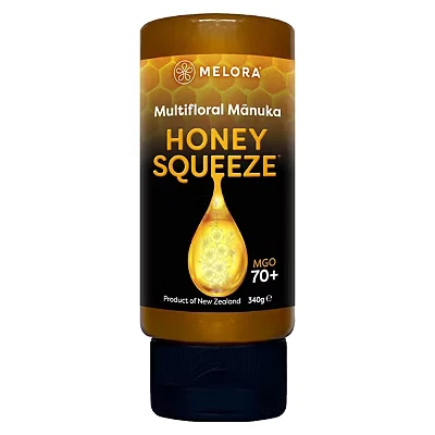 Squeezy 100% Certified & Pure New Zealand Manuka! The powerful flavour of Manuka honey to create the perfect honey for your breakfast table. Use Melora Mānuka Honey to give yourself an extra bounce by making it part of your daily routine: Perfect for all the family, to drizzle on pancakes, waffles, porridge, in salads, in hot drinks or for that perfect dressing. Or just straight off the spoon. Why Manuka? High levels of methylglyoxal (MGO) and hydrogen peroxide give manuka honey superior antimicrobial and anti-inflammatory properties. Moari Remedy: Manuka Honey is known for its antibacterial activity, this traditional Moari Manuka Honey has many uses for soothing coughs, sore throat, oral hygiene, promote skin healing. Straight From Source: Our honey can be traced back to the land from which it's sourced, allowing us to guarantee quality and authenticity