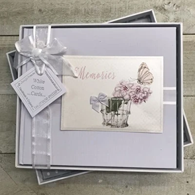 Memories. Guest Book. Peonies & Butterflies Design. Hand Finished by WHITE COTTON CARDS (PM3)