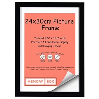 Memory Box Wrapped MDF Picture/Photo/Poster frame with Real Glass Moulding 20mm Wide and 15mm Deep (24 x 30cm) Black 9.5" 11.8"