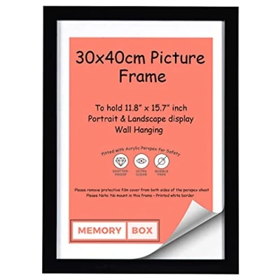 Memory Box Wrapped MDF Picture/Photo/Poster frame with Real Glass Moulding 20mm Wide and 15mm Deep (30 x 40cm) Black 11.8" 15.7"