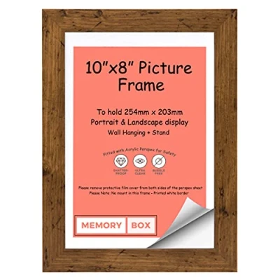 Memory Box Wrapped MDF Picture/Photo/Poster frame with Real Glass Moulding 30mm Wide and 15mm Deep (25.4 x 20.3cm) Rustic 10" 8"
