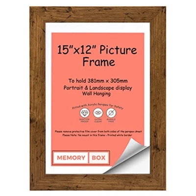Memory Box Wrapped MDF Picture/Photo/Poster frame with Real Glass Moulding 30mm Wide and 15mm Deep (38.1 x 30.5cm) Rustic 15" 12"