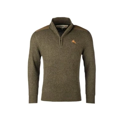 Men's 1/2 Zip Chunky Country Shooting Sweater Embroidered Men Sweatshirt (UK, Alpha, XXL, Regular, Olive Tweed)